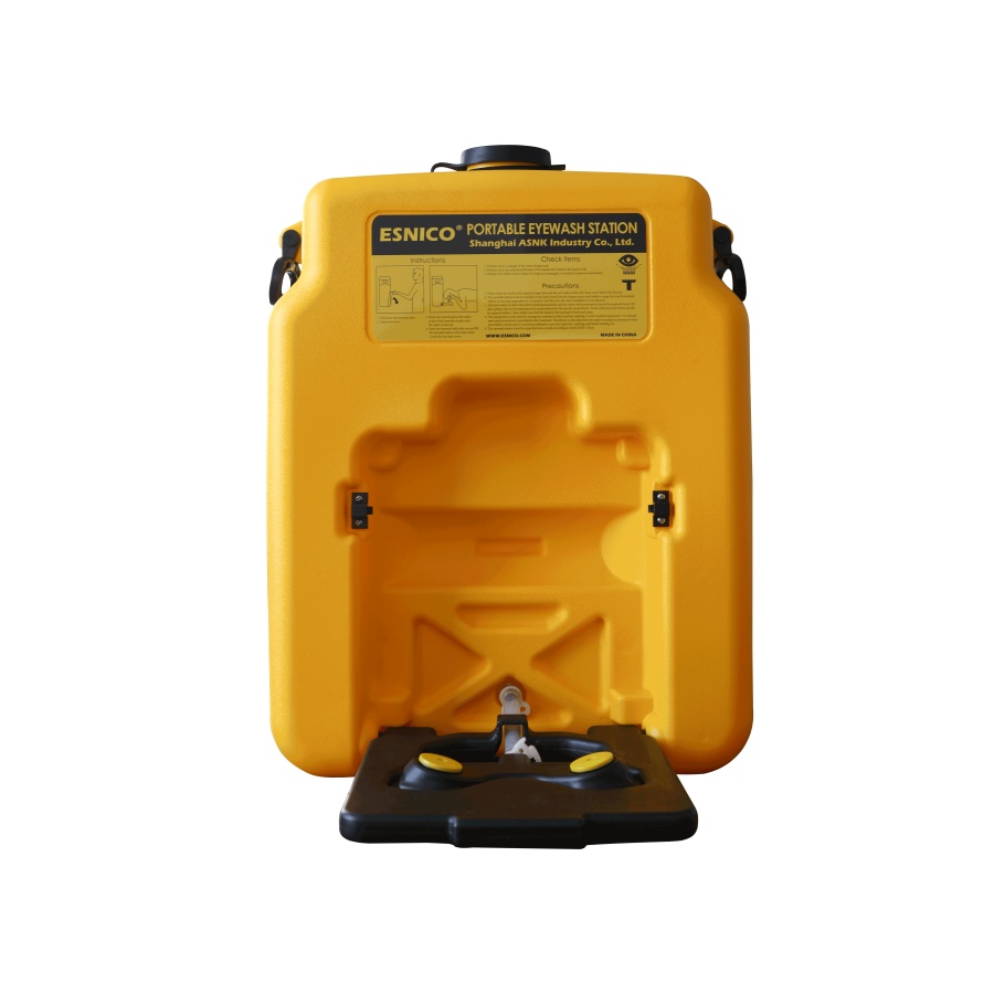 Constructed from durable, high-visibility yellow polyethylene, the unit is UV-resistant, corrosion-free, and suitable for both indoor and outdoor installations. The gravity-fed design requires no water connection, making it ideal for remote sites, temporary work zones, confined spaces, warehouses, workshops, and construction areas.